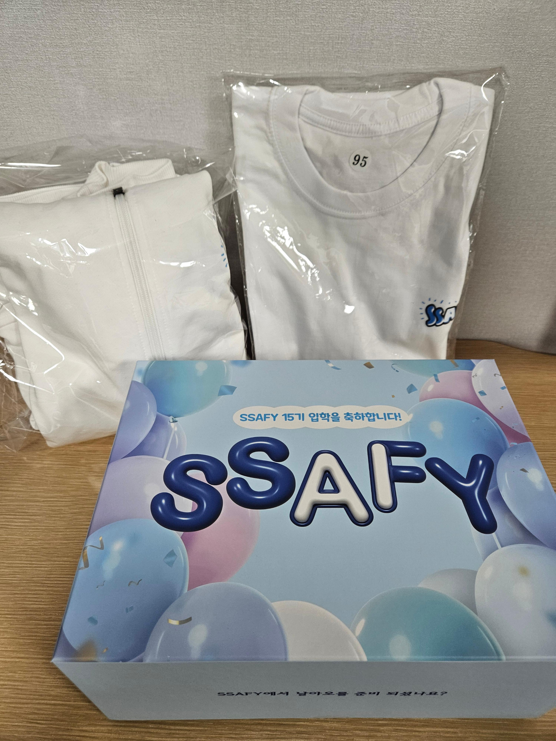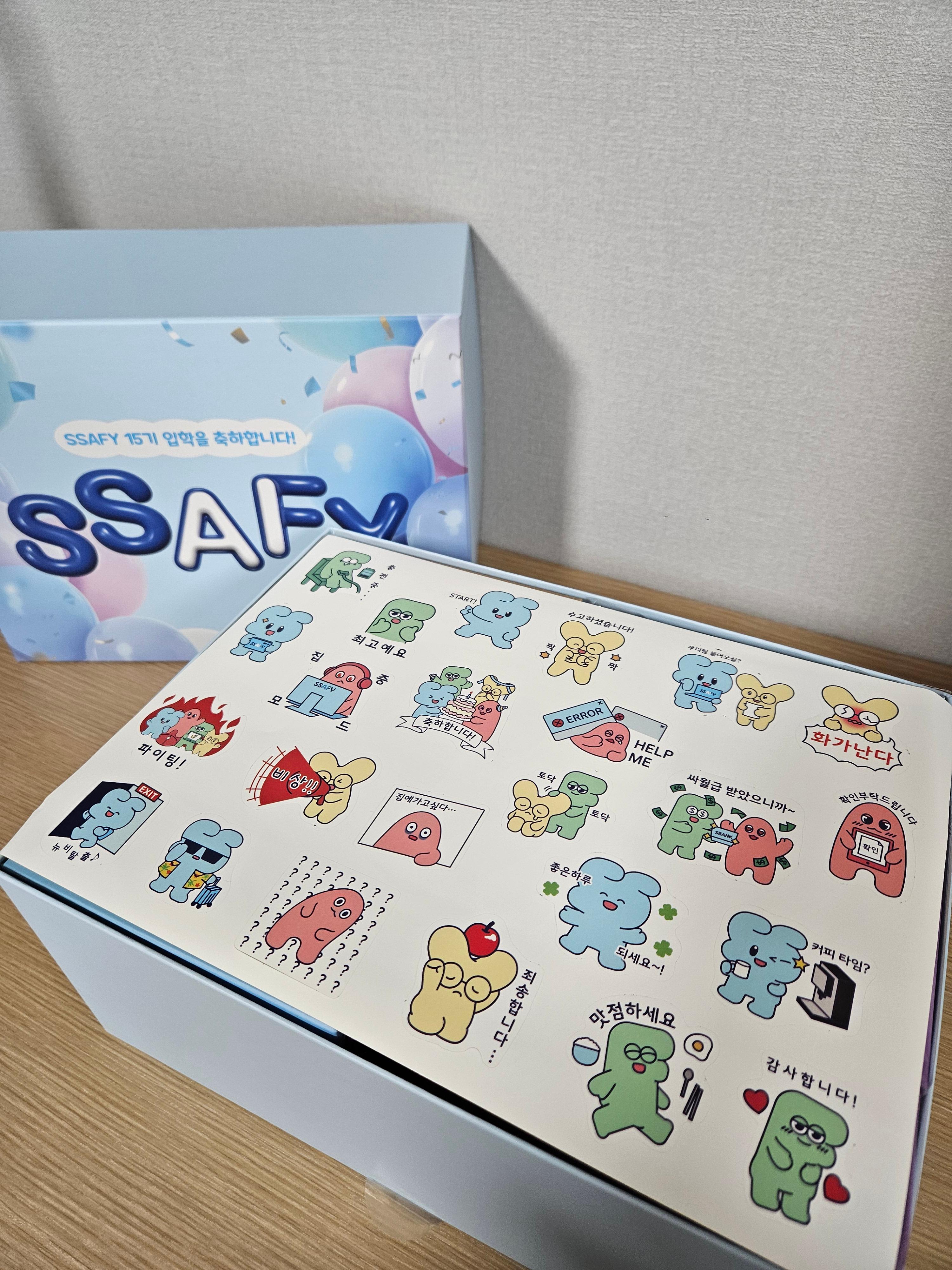 지난 입학식 날에는 이렇게 다양한 SSAFY 15기만을 위해 준비된 웰컴킷을 받을 수 있었다.
